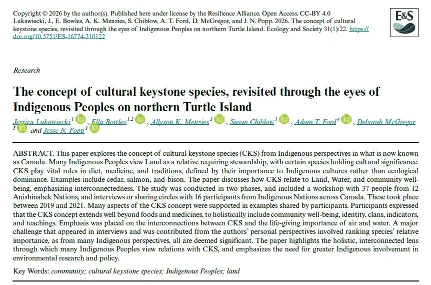 Jesse Popp February 13, 2026 New Paper!: The concept of cultural keystone species, revisited through the eyes of Indigenous Peoples Jesse Popp February 13, 2026